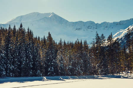 Beautiful winter landscape in the mountains with snow-capped peaks