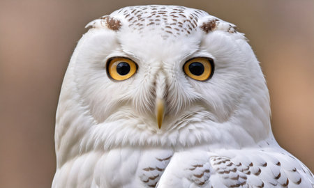 Majestic Snowy Owl Perched Against a Soft Brown Background During Winter Season