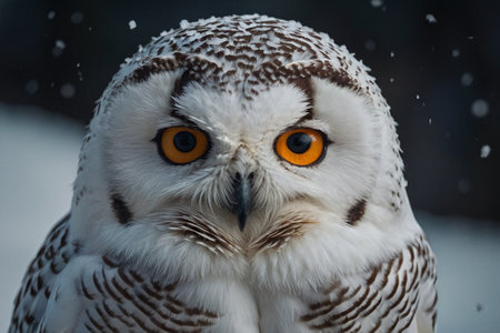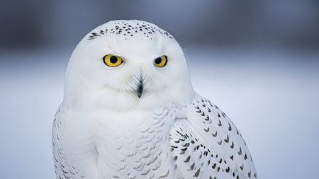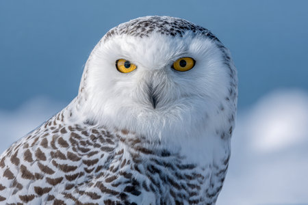 Stunning Snowy Owl Portrait with Intense Yellow Eyes and Spotted Plumage in Arctic Environment