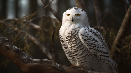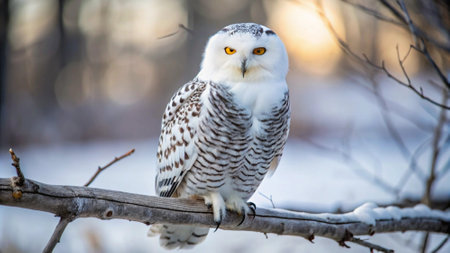 Majestic snowy owl perched on a branch