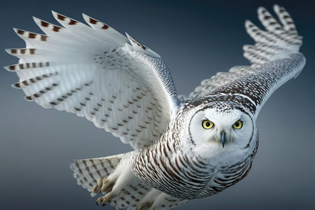 Snowy Owl (Bubo scandiacus) on gray background