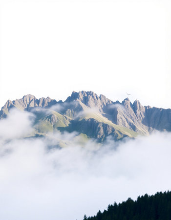 Mountains in the fog, Dolomites, South Tyrol, Italy