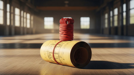 An illustration depicts cylindrical forms in blue and yellow hues, interconnected by strings. The composition emphasizes network and connection. The design features soft lighting, creating a modern, graphic style. Ideal for illustrating concepts in technology or business contexts. This image could be used for various commercial projects.