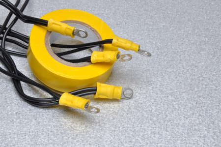 Several electro connectors on a black background shot in macro mode. Visible metal connectors of connectors.
