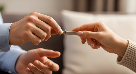 Close-up of one hand passing a silver USB flash drive to another hand. The image symbolizes data transfer, information sharing, technology exchange, or digital security in a business or personal context.