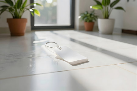 This striking image showcases a sleek metal keychain resting on a textured surface, highlighted by warm light reflections, emphasizing its modern design.