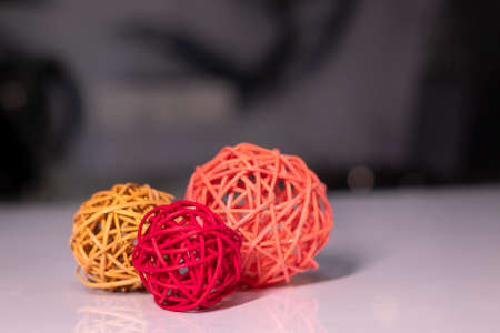 A vibrant collection of colorful decorative balls arranged together, showcasing a variety of textures and hues, creating a playful and eye-catching composition.