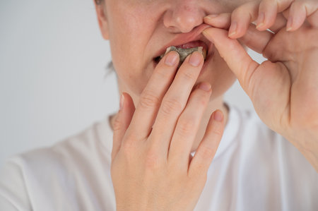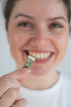 Woman Chewing Nicotine Snus Product