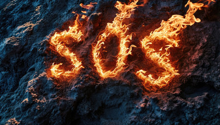 Word SOS made of red smoke in cloudy sky