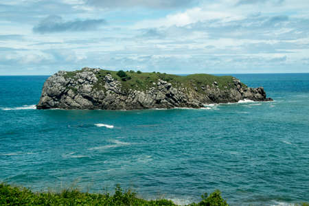 the green and rocky coast of the Murcielago Island in Costa Rica