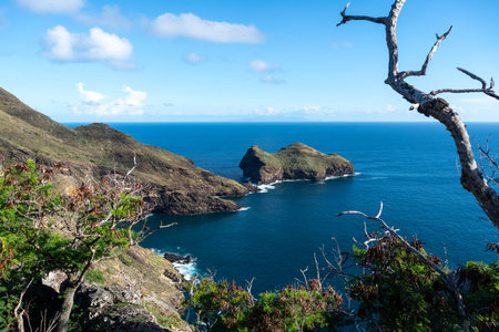 Ponta de Sao Lourenco peninsula with rust red cliffs and islets