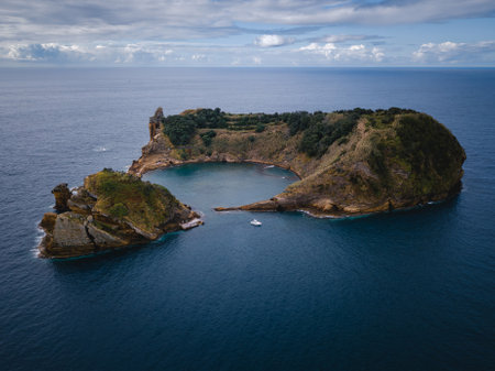 Ilheu de Vila Franca is stunning volcanic islet off Sao Miguel, Azores, a natural paradise for snorkeling, swimming, and coastal exploration. High quality photo