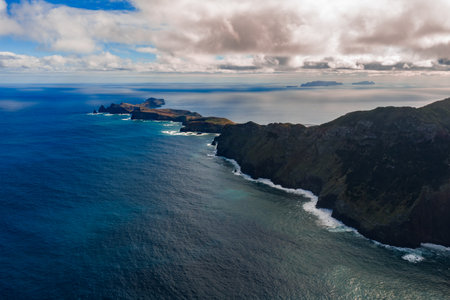 Aerial panorama of Ponta de Sao Lourenco cliffs and Atlantic coves