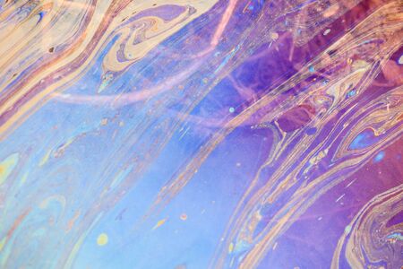Fluid art made of colorful soap bubble film. Trendy Inkscape blurred background. Alien space planets art. Selective focus.