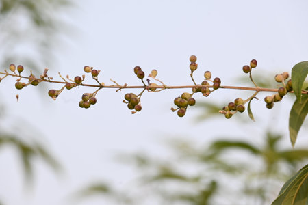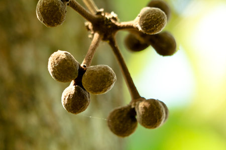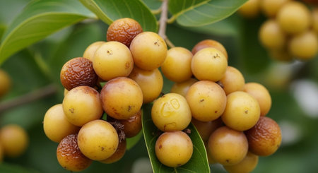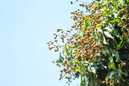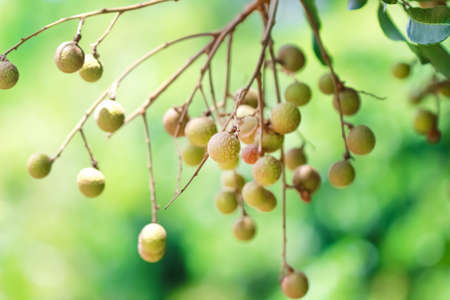 Longan ripe fruits (Dimocarpus longan) on the tree, in shallow focus