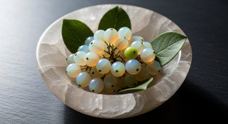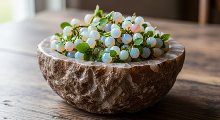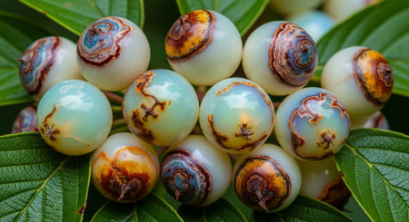 Soap nut shells are beautifully arranged on a ceramic dish, highlighting their intricate textures and rich colors. Soft lighting enhances the natural elegance of this clean composition.