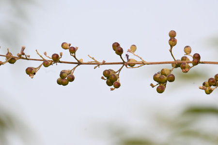 Vitex negundo fruits. Its other name Chinese chaste tree, five leaved chaste , horseshoe vitex, nisinda and Nirgundi. It is a large aromatic shrub. It is an Ayurvedic medicine.