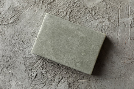 Piece of natural handmade soap on gray background