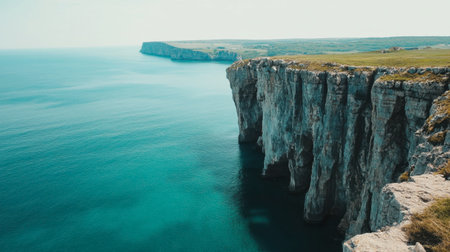Captivating image of towering cliffs beside a sparkling ocean, contrasting with a vibrant sky, perfect for showcasing nature's stunning beauty.