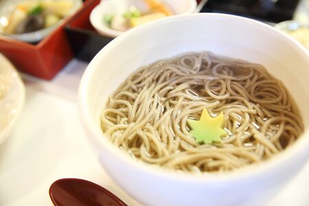 Japanese set meal wheat soba noodle with Cold homemade traditional sauce in the Japanese restaurant