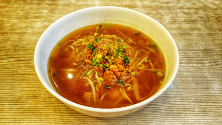Delicious Ramen Japanese noodle soup dish, Abstract background