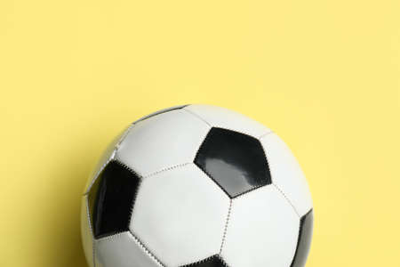 Classic soccer ball on yellow background. Minimal creative concept, copy space