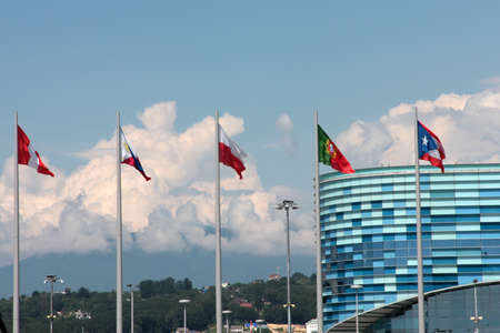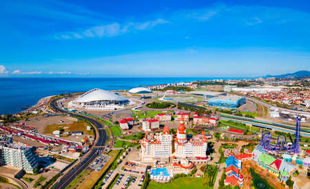 Sochi, Russia - October 04, 2020: Fisht Football Olympic Stadium in Sochi Olympic Park is located in Adler city. Park was constructed for the 2014 Winter Olympics.