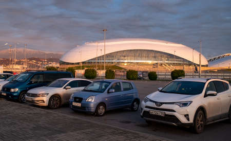 December 6, 2021, Sochi, Russia. Parked cars at the Bolshoy Ice Palace in Sochi.