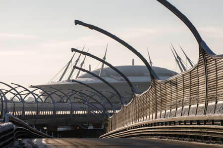 Saint-Petersburg, Russia - December 4, 2016: Open high-speed highway connected the districts of the city the Western High-Speed Diameter-site under construction stadium, where in 2018 will be held the World Cup.