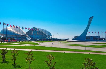 Adler, Sochi, Russia, 11.01.2021. The park of the 2014 Winter Olympic Games. Sports facilities - Ice Palace, Fisht Stadium