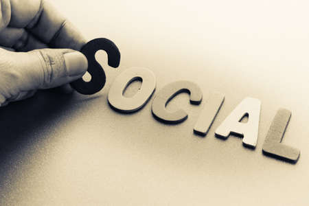 Hand arrange wood letters as Social word