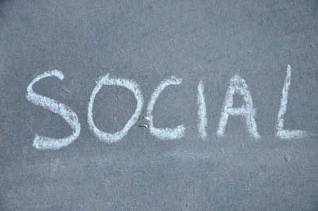 Top view, Social the alphabet on the wooden tile pieces scraped square. Isolated on white background