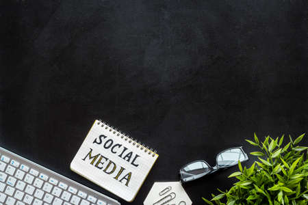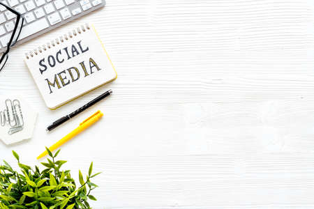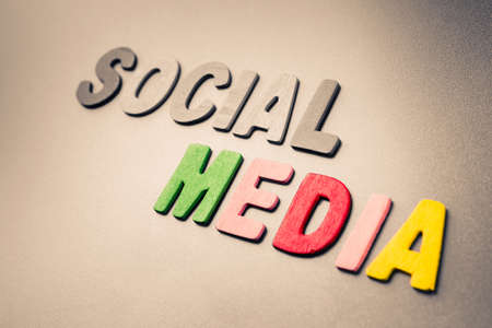 Social Media on wooden cubes with colorful paper and pen, Concept Inspiration on wooden background