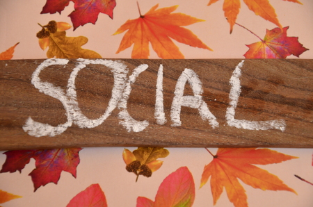 Social concept on wooden cubes with floral background