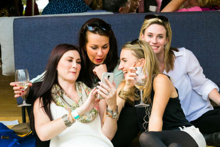 Johannesburg, South Africa - October 12 2017: Friends taking a selfie on their phone and generally enjoying a day out at a Food and Wine Fair