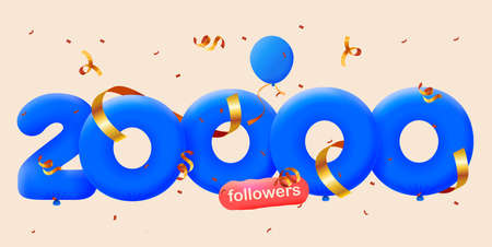 Thank you 20k followers celebration with blue balloons, confetti and ribbons. Vector
