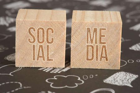 Social Media on wooden cubes with colorful paper and pen, Concept Inspiration on wooden background