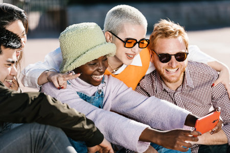 Young multiracial friends taking selfie together - Friendship and diversity concept