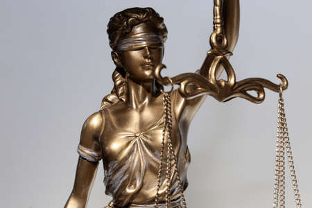 Brass statuette of Justice wearing a blindfold symbolic of fair enforcement of the law