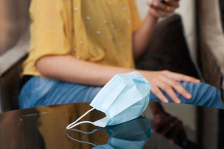 Medical mask for protection against viruses. Surgical protective mask. Medicine and health care concept