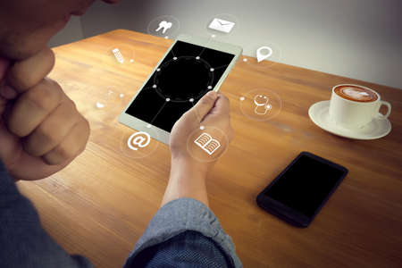 Young man using smart phone Social media and social network Marketing concept People Connection
