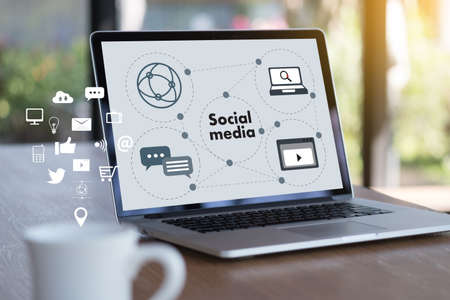 Social Media Network Community Connection Concept, Technology Communication Mobile Phone. Social Media Icons for Smartphone Device of Digital Network Information. Technology Media Phone Marketing