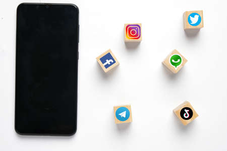 Stuttgart, Germany - April 5, 2021: Logo of social media icons marketing network Facebook, Instagram, YouTube, Twitter and WhatsApp on the internet square in Stuttgart, Germany.