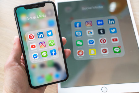 BANGKOK, THAILAND- June 26, 2019: Social media app, mobile cross-channel internet online application for people lifestyle in multi-channel digital 4.0 age with logo on iPhone X and ipad pro touchscreen