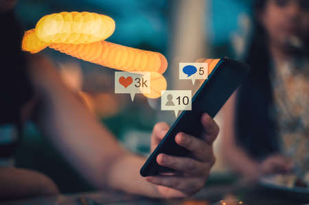 Hand using smartphone with Social media concept