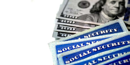 Social security card and US currency one hundred dollar bill Retirement Concept Social Security Benefits