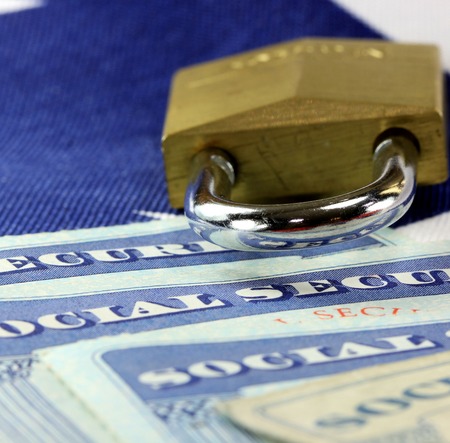 Padlock and social security card - Identity theft and identity protection concept