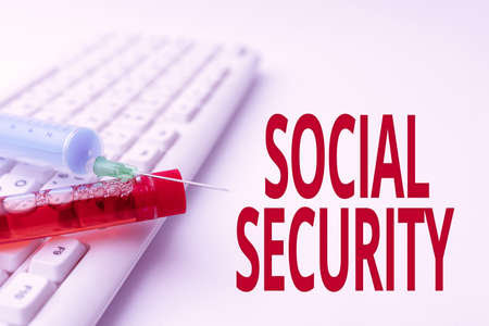 Text sign showing Social Security. Word for government system that provide monetary assistance to showing Typing Medical Notes Scientific Studies And Treatment Plans