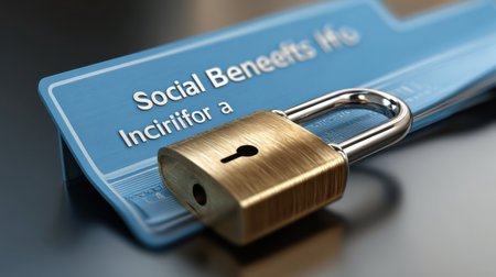A blue card with a lock on it and the words social benefits written on it.