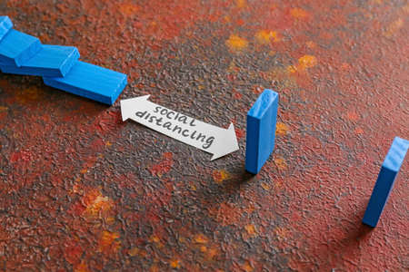 Composition with blocks on color background. Concept of social distance